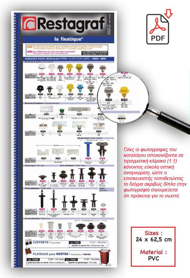 - Ταξινομημένος ανά μάρκα αυτοκινήτου καθώς και ανά σημείο εφαρμογής.